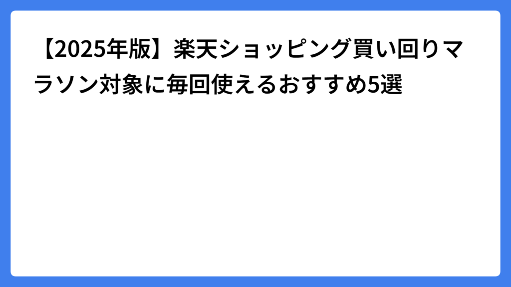 【2025年版】楽天ショッピング買い回りマラソン対象に毎回使えるおすすめ5選