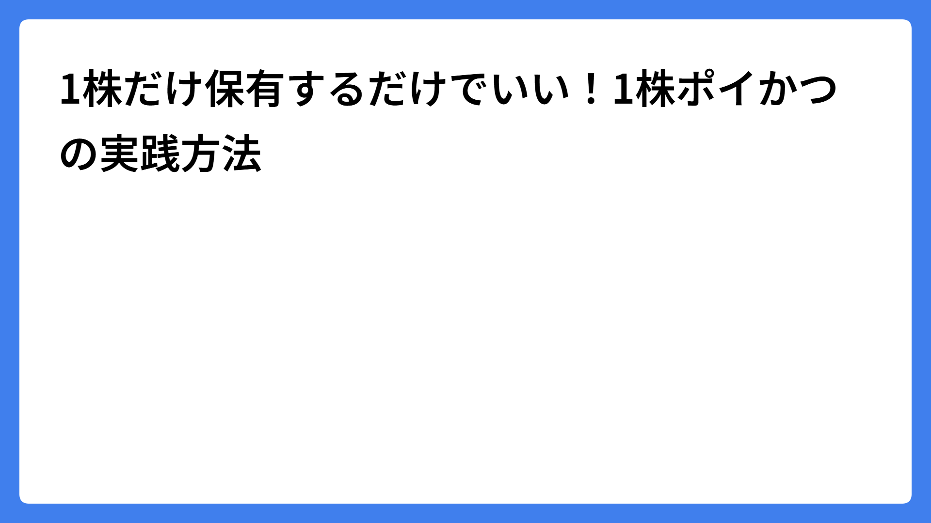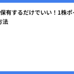 1株だけ保有するだけでいい!1株ポイかつの実践方法